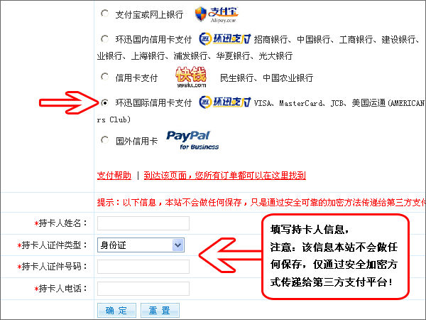 5.環(huán)迅國際信用卡支付 6.國外信用卡(Paypal)